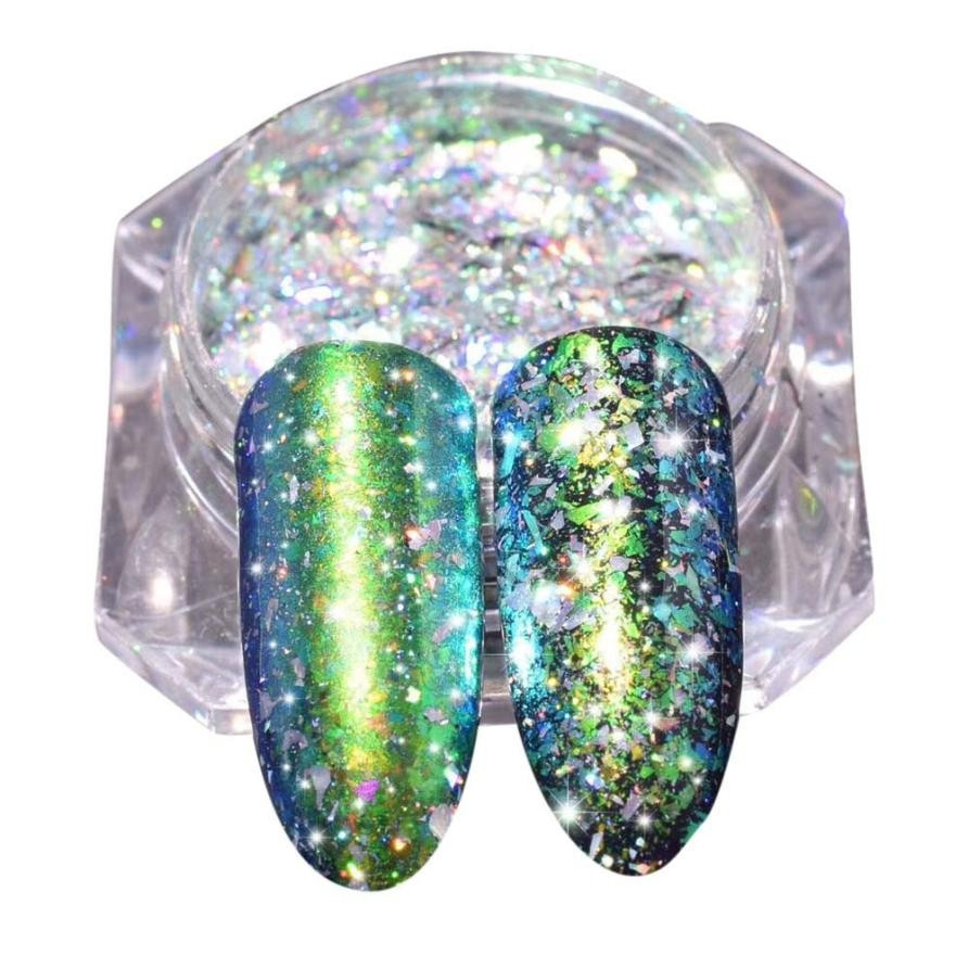 Дзеркальна втирка, пудра "Пластівці Юкі Північне Сяйво", прозорі №7 2 г